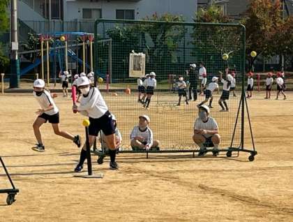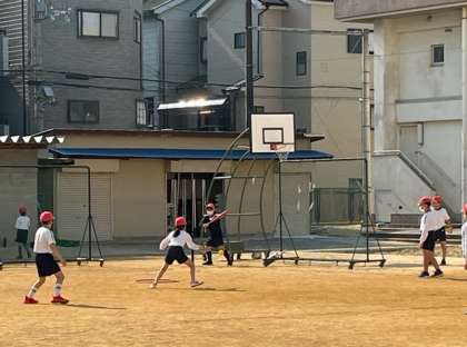 さわやかな青空のもと、5年生がティーボール競技を行いました。ポールにソフトボールを乗せて打つ姿はみんなかっこいいです。楽しそうにプレイしていました。