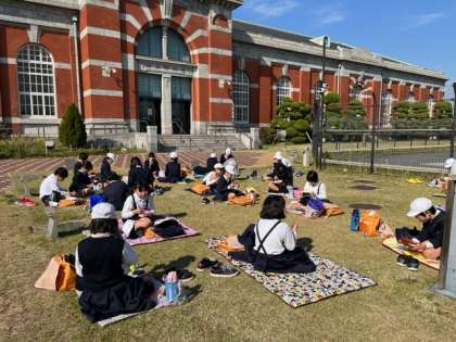 広い浄水場の敷地をくまなく歩いたあと、レンガづくりの水道記念館に入り、クイズラリーを楽しみました。しっかりと水についての勉強もできたと思います。そしてお待ちかねのお弁当の時間です。水道記念館の前の芝生でゆったりとお弁当の時間を過ごすことができました。