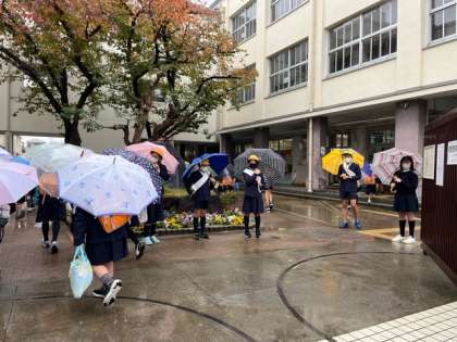 今週は「あいさつ週間」です。初日である今朝はあいにくの雨でしたが、係の児童が傘を差しながらも元気に登校してくるみんなを明るい声で出迎えてくれました。朝のあいさつがしっかりできると一日気持ちいいですね。
