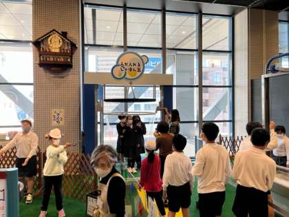本日、快晴のもと、6年生は校外学習としてキッズプラザと扇町公園に出かけました。先生からの注意を聞いてからグループごとに活動です。大きなシャボン玉に入ってみんなうれしそうでした。
