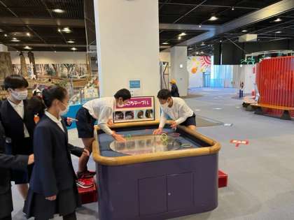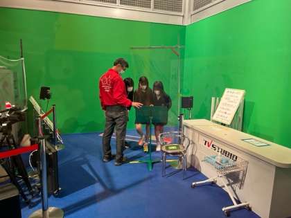施設のなかには模擬スタジオもあり、キャスターの気分を味わった児童もいました。いろいろな遊びのしかけや施設でみんな楽しめたようです。