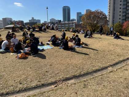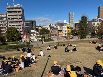 十分に遊んだあとは、扇町公園に移動しての昼食です。みんなおいしそうにお弁当をほおばっていました。その後、時間までボール遊びなどで楽しみました。