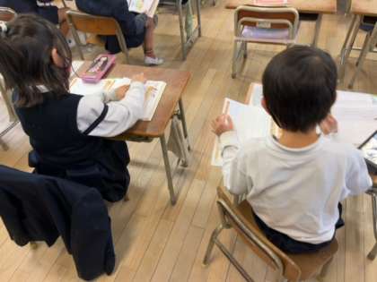 「やまがら」の誕生日と「うぐいす」の音楽の練習。「みそさざい」は、せっかく招待状をもらったのにやまがらのところへ誰も行かないことを気の毒に思い、一度はうぐいすのところへ来たが、自分だけ、やまがらの元に行く−そういったお話をもとに、みそさざいややまがらの気持ちから、友だちとなかよくするために大切なことを考えていきました。