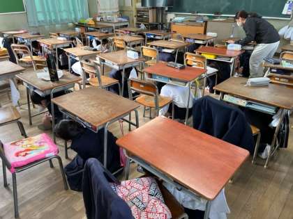今日の午前中に避難訓練を行いました。地震の発生を想定してのものです。地震発生を知らせる放送があると、みんなすばやく机の下にもぐりこみました。そのあと、校庭へ急ぎながらも落ち着いて移動することができました。日ごろの心の準備が大切であることもわかってもらえたように思います。