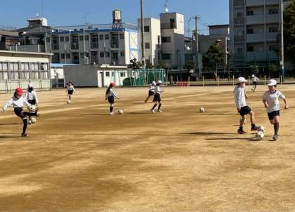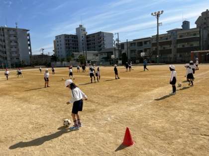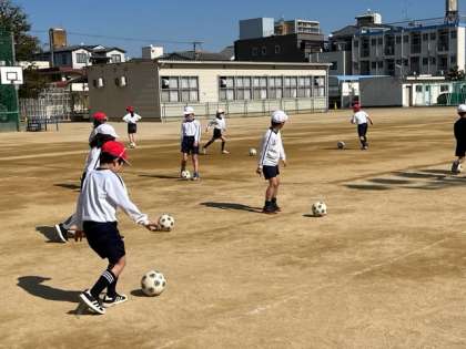 サッカーボールをけって自分でドリブル。友だちに上手にパス。未来のサッカー代表選手が生まれることを期待しましょう。