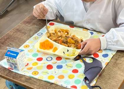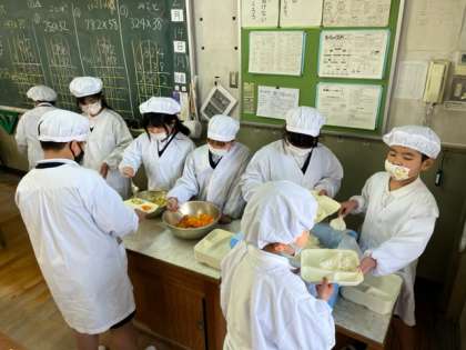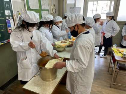 3年生の給食の様子です。今日のメインメニューはハヤシライスでした。