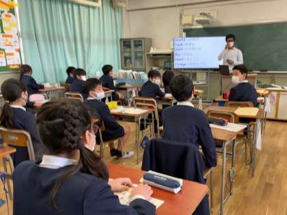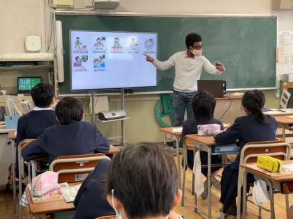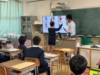 英語で様子や状態をあらわす言葉を学んでいきました。「always=いつも」「usually=たいてい」などの頻度をあらわす言葉や、「brave=勇敢な」「funny=おかしい」といった子どもたちにはこれまであまりなじみのなかった言葉を繰りかえし声に出して学びました。