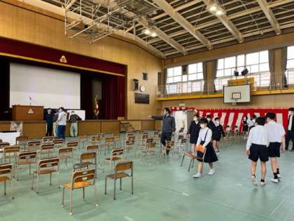 明日の入学式の準備をしました。新6年生のみんなも登校して、いすを並べたり、掃除をしたり、と心をこめてお手伝いをしてくれました。新入生が明日元気に登校してきてくれることをみんな楽しみにしています。