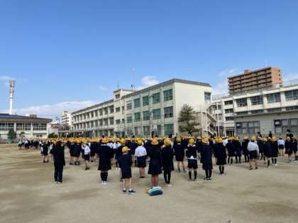 一学期の始業式を行いました。2年生から6年生までが校庭に久しぶりに集合です。転任してきた先生の紹介のあと、校長、生活指導と保健の先生からの話がありました。みんなしっかりと聴くことができていました。