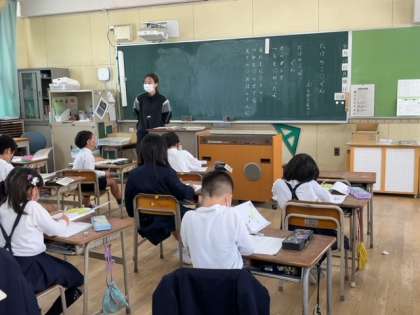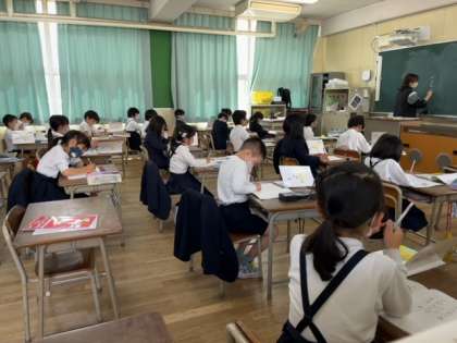 2年生は国語の授業で「たけのこ ぐん」の学習をしました。詩を文字でノートに書き写し、声に出して読みます。昨年の新入生が1年間の時を経て、「ぐん」と成長した姿になぞらえる教材です。