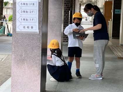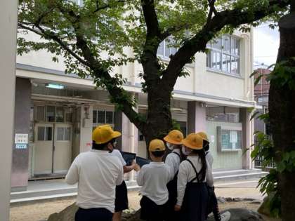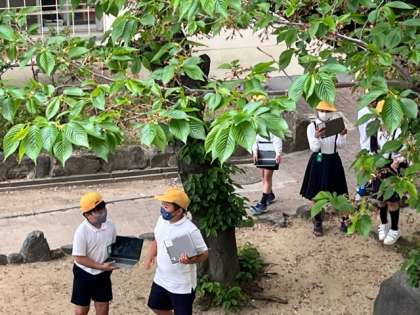校内の春の植物や生き物の様子を調べました。タブレットPCを持ち出して、いろいろと撮影をし、みんなで考察をしていきました。