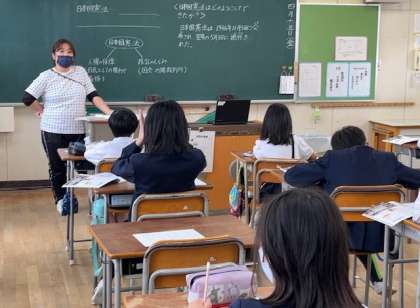 5月3日の「憲法記念日」を前に、社会の授業で日本国憲法について学びました。基本的人権の尊重、国民主権、平和主義といった憲法の三原則を含め、憲法公布・施行に至るまでの経緯などを先生から教えてもらいました。