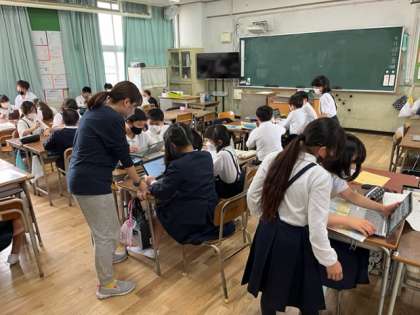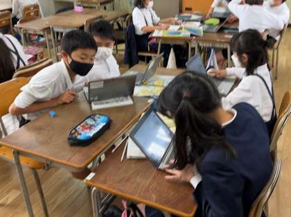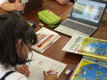 兵庫県、滋賀県、石川県、北海道など、グループごとに都道府県を決め、そこの名物、ゆるキャラなどをインターネットで調べて新聞にまとめていきました。自分たちが今まで知らなかった地域に興味をもつことで学びを深めてもらいたいと思います。