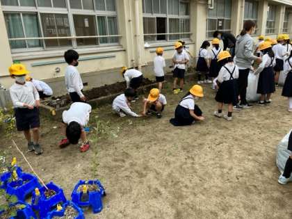 2年生みんなで学習園の草ひきをしてくれました。新しく野菜などの苗を植えるのが楽しみですね。