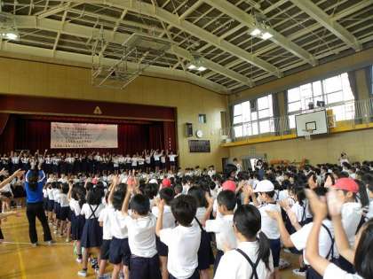 6年生が会を進行してくれました。オルガンやけん盤ハーモニカでの演奏隊。舞台の上や下でのリズム隊。