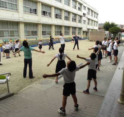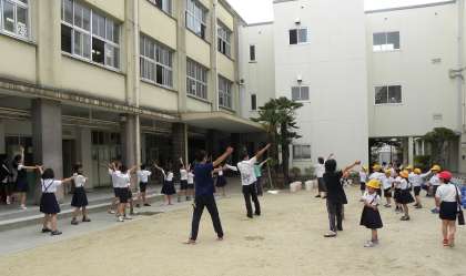 毎週月曜日、1時間目の休み時間は運動委員会の人たちがラジオ体操をしています。