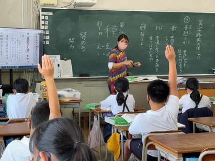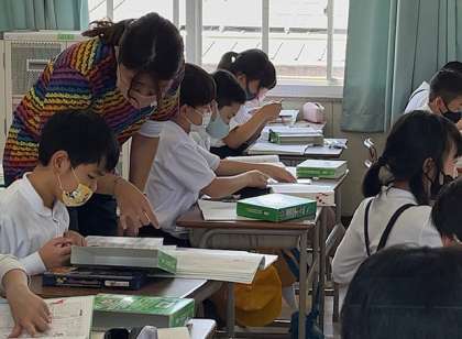 漢字辞典の使い方を先生から教えてもらいました。漢字の音読みと訓読みのちがいを理解して、それぞれの読み方から漢字をさがします。