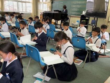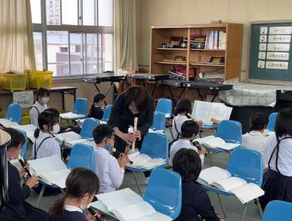 リコーダーを使って色々なメロディーを演奏しています。今日、はじめての曲として「LEMON」の練習をしました。半音の部分がむずかしそうでしたが、みんな頑張って取組みました。