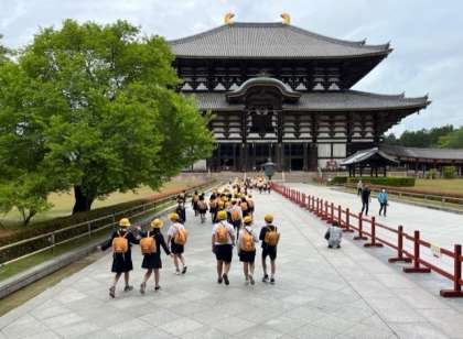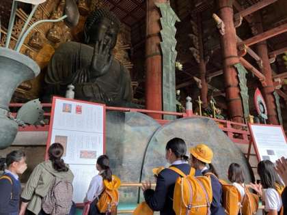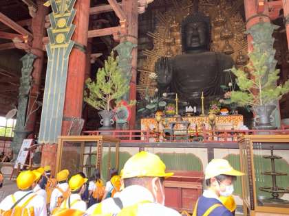 東大寺の大仏殿に入りました。大仏さまの実物を初めて観る子どもたちも少なくなく、その大きさに感たんの声をあげていました。