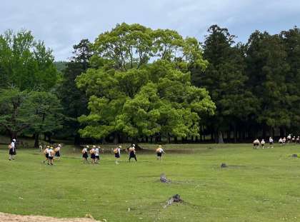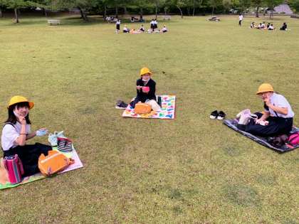 正倉院の外観をみてから、昼食会場の春日野園地へ移動しました。コロナウィルス感染が落ち着いてきたとはいえ、お弁当は安全性に配慮をして食べました。食事後は広い園地で身体を動かしたり、思い思いの時間を過ごしました。