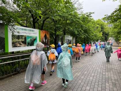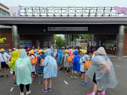 3年生は天王寺動物園に出かけました。天王寺駅に着いたあたりから雨が降り出し、かっぱを着込んでの見学です。