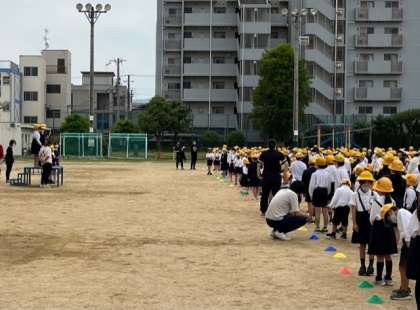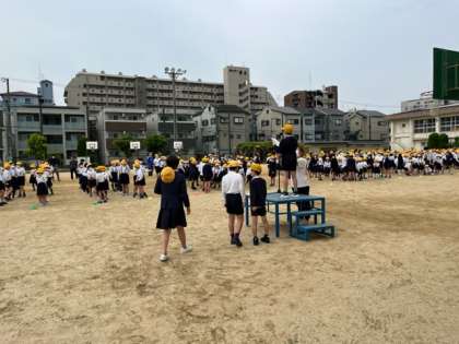 児童朝会を行いました。係りの児童が考えた今津小学校に関する「〇×クイズ」に楽しく取組みました。
