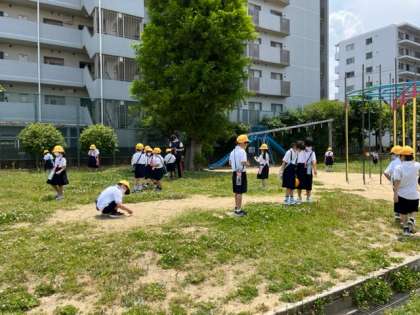 アスレチックエリアで、虫や小さな生き物、草花にふれる活動をしました。友だちと仲よく過ごすことができました。