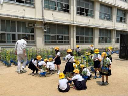 2年生はミニトマトを育てています。葉や茎の付け根から出てくる芽を「わき芽」といいますが、今日はこのわき芽をとる作業を行いました。甘くておいしいミニトマトの実を収穫するため、みんながんばって取組みました。