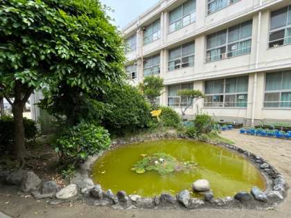 学校園の池のスイレンがきれいな花を咲かせています。心がなごみます。