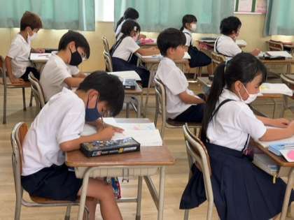 お母さんにもらった帽子を中心に展開する「名前を見てちょうだい」という物語文を学習しています。登場人物の様子や気持ちについて考えながら読み進めていきました。