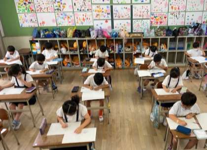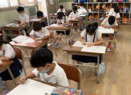 お手本の文章の書き写しをしました。書き写すことで国語力なかでも読解力を高めることが期待できます。また多くの漢字に触れることも効果的です。