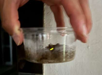カップのなかで土まゆをつくっていたホタルが成虫になりました。きれいな光をはなっています。このあとホタル小屋にはなしました。今夜は20時過ぎの時点で十匹ほど光っているホタルが確認できています。鑑賞会は明日5日(火)までとなっています。