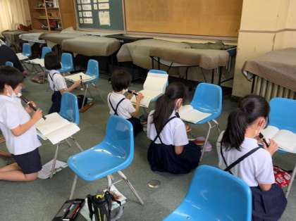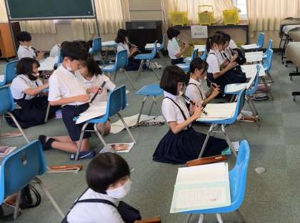 ひとりずつ先生の前で課題曲を演奏します。順番を待つ間、みんなそれぞれに頑張って練習していました。