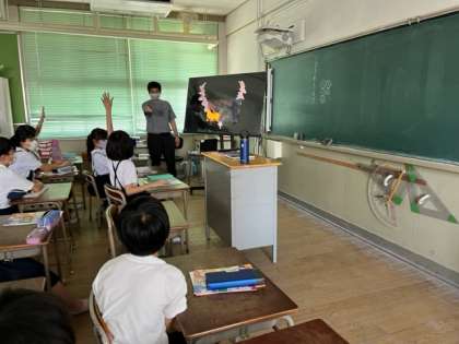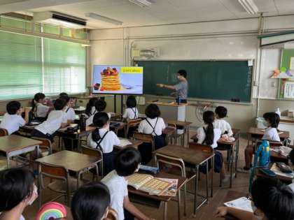 テレビモニターに映しだされる映像が何かを英語で答えるゲームをしました。隠されていた部分が少しずつ見えてきます。みんなで楽しく英語にふれることができました。