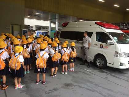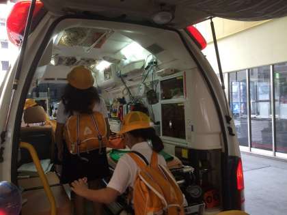 救急車の中もじっくり見せていただきました。中に整っている設備もよくわかりました。