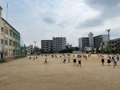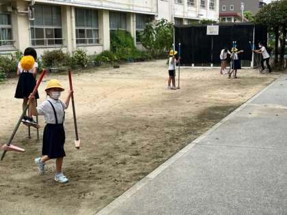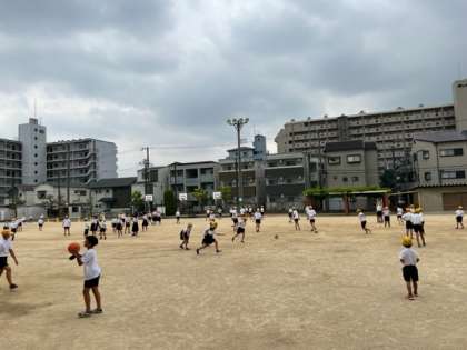 中休みの様子です。子どもたちが元気に活動する様子に、学校が再開したことを実感します。