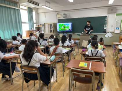 昆虫の体のつくりの特徴を確認してから、トンボ、ダンゴムシ、クモなどの生き物が昆虫かどうかをみんなで考えていきました。