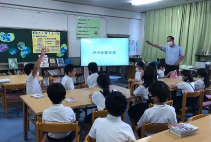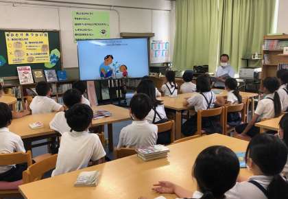 昨日、今日と4年生の3学級それぞれ個別に、校長から「パパの柿の木」という絵本の読み聞かせを行いました。突然の航空機事故で最愛の夫、父を失ったという家族のお話を通じて、「あたりまえの日常の大切さ」「悲しみにくれる人に心を寄せるということ」を子どもたちには考えてもらいました。教育目標のひとつである「他人(ひと)の痛みがわかる子ども」にみんなが成長してもらいたいと願っています。