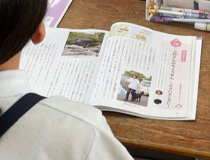 「上村さんのちょうせん -ひさい犬と共に- 」という教材をもとに、高い目標を立て困難があってもくじけずに努力して物事をやり抜くことの尊さを考えました。主人公の上村さんの挑戦に、自分の思いを重ねながら学習を進めていきました。