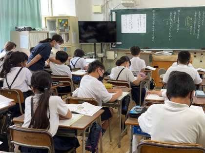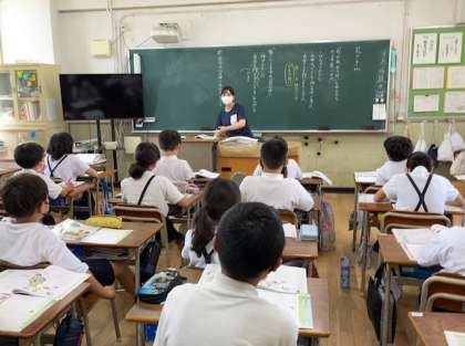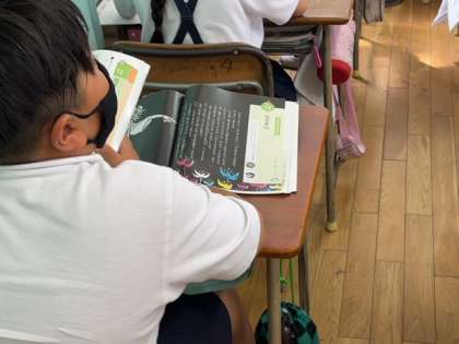 「花さき山」の話を読み進め、良いことをすると花が咲くという意味を考えました。あわせて先生からの「みんなの自分自身のよいところはなんだろう?」と問いかけに、ひとりひとり、じっくり考えていた様子でした。