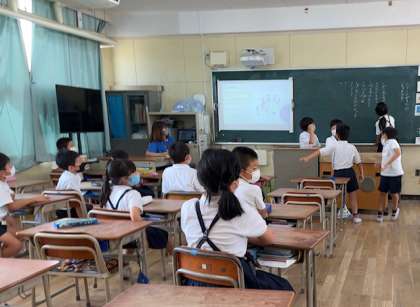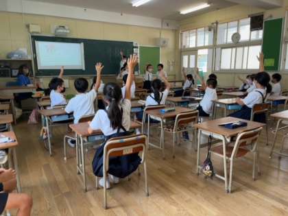 学級活動で行うゲームを決めていきました。「ハンカチ落とし」「なんでもバスケット」など、いくつか候補を出し、そのゲームの内容や進行方法を発案した児童が説明しました。希望者数の多かった3つのゲームを次の学級活動の時間に行います。