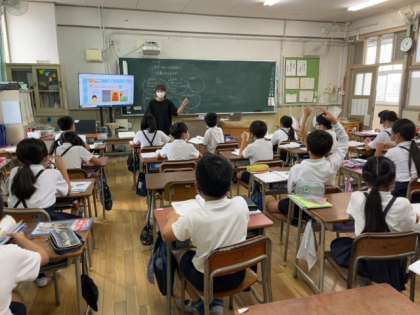 図形について学ぶなかで、教室にある「正方形」「台形」「平行四辺形」などのかたちのものを探していきました。みんなしっかり見つけることができていました。