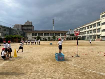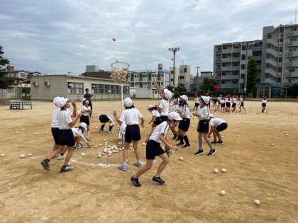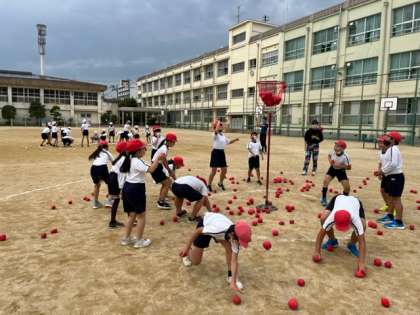 運動会ではおなじみの玉入れ競技を行いました。ひとりずつリレー形式で入れたり、グループみんなで入れたりと、楽しく取り組むことができました。