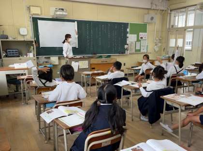 昆虫記を著したファーブルの姿を通して、自然に親しみ、動植物にやさしく接する気持ちについて考えました。ファーブルが虫を観察したあと、どんな思いをもって虫を逃がしてあげたのか、子どもたちにその感想を聞いていきました。