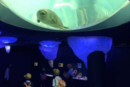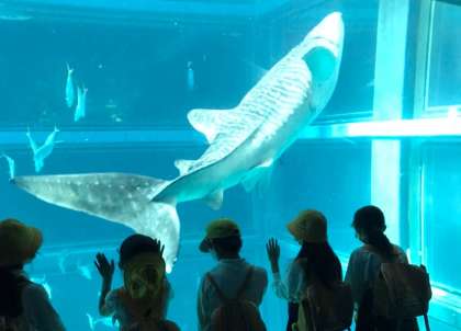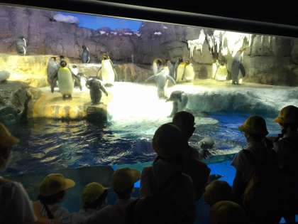 大水槽ではジンベエザメの大きさにみんな驚いていました。魚だけでなく、アザラシやペンギンなどの動物のかわいい姿もみることができました。