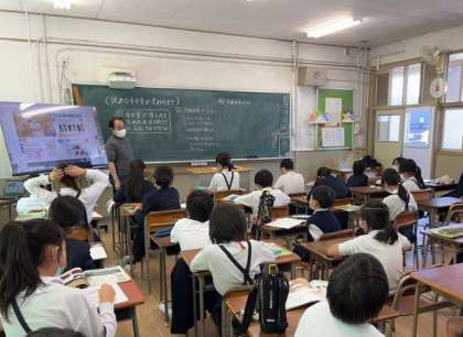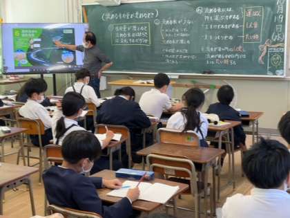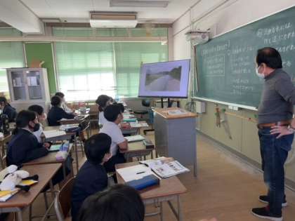 流れる水の3つのはたらきを確認したうえで、流れる水の量が変わるとそのはたらきがどのようになるのかを学習しました。ビデオ教材をつかって、河川の氾濫による被害についても考えていきました。