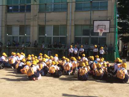 晴天の下、朝7時前から5年生の児童は続々と集まってきました。楽しい行事に期待を膨らませている子や、三日間家族と離れるのが少し不安な子など、思いは様々ですが、どの子もその表情は笑顔です。