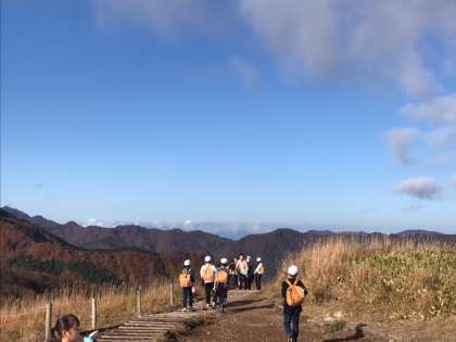 頂上に子どもたちが続々と上がってきました。笑顔で記念撮影です。