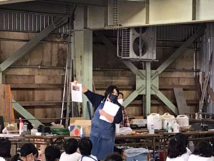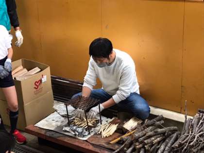 自分たちで昼食を作る時間がやってきました。まずは、作り方のレクチャーから。かまど係と調理係に分かれて、しっかり話を聞きます。美味しいカレーライスにするために、真剣に話を聞いています。