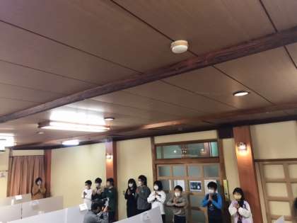 お腹を空かせた5年生。食事係の挨拶に合わせて「いただきます」。食欲旺盛でもりもり食べていました。